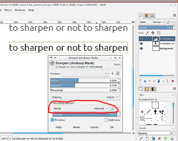 Enhance sharpen does not work on a text field on Gimp 2.1.