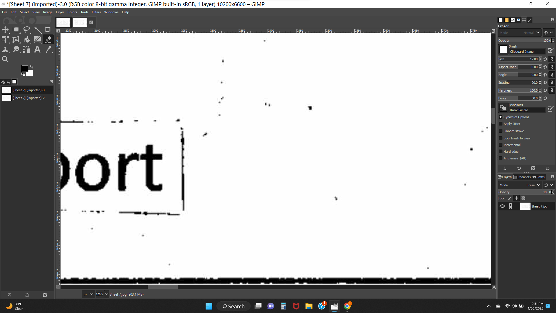 (01-29-2023, 09:54 PM)SoundOfSilence02 Wrote: I use Gimp to clean up JPG files, primarily using the eraser tool. The eraser suddenly quit working, probably because I accidently clicked on something I shouldn't have. I have done Google searches and followed all the suggestions I've found. Nothing has worked. I have un-installed Gimp and reinstalled it. Didn't fix it. I have reset everything to defaults. Didn't fix it. Can anyone help?