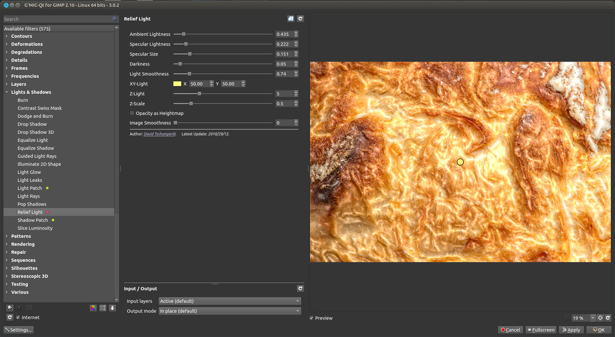 Filters ➤ G'MIC ➤ Lights & Shadows ➤ Relief Light, it's what I use to give a plastic-ish effect on custom fonts