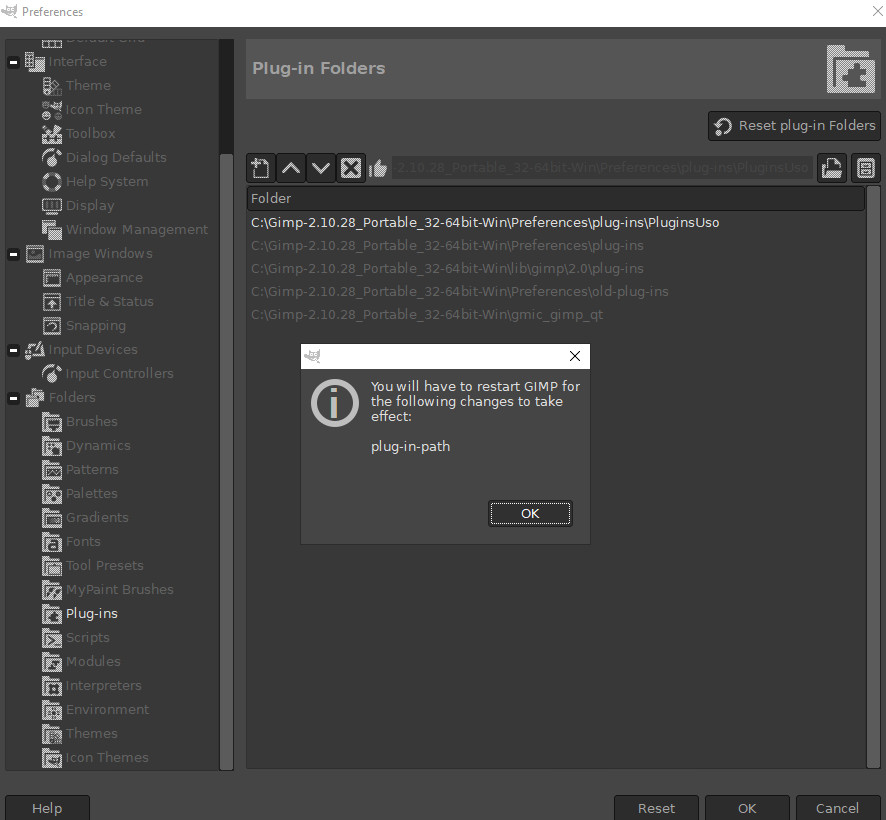 Even though after I changed this order and received the warning that I would have to restart Gimp for the change to take effect, I gave ok and restarted Gimp.
