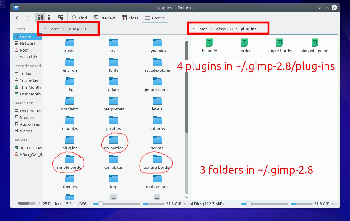 and unzip it. There is a folder containing four plugins beautify border simple-border skin-whitening Take those files out of that folder and move to your Gimp 2.8 profile plugins folder, ~/.gimp-2.8/plugins (note anything starting with a . {dot} is a hidden file, enable hidden files in your file browser, often Alt+. works)