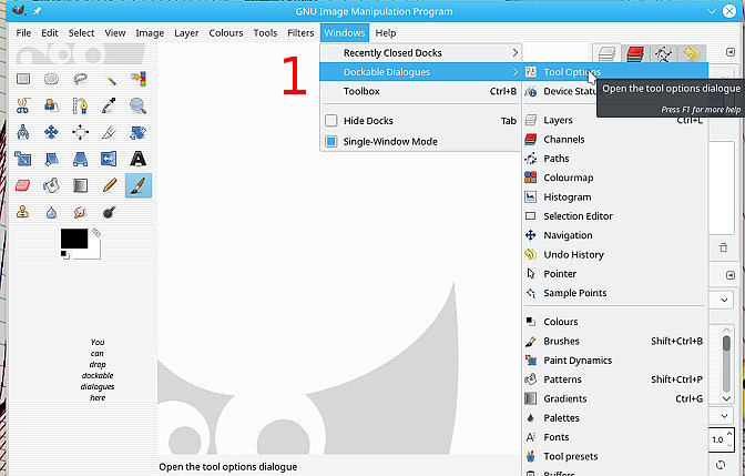 Did you look at the second video Initial set-up for Gimp in single window mode? That is the best way for new users.