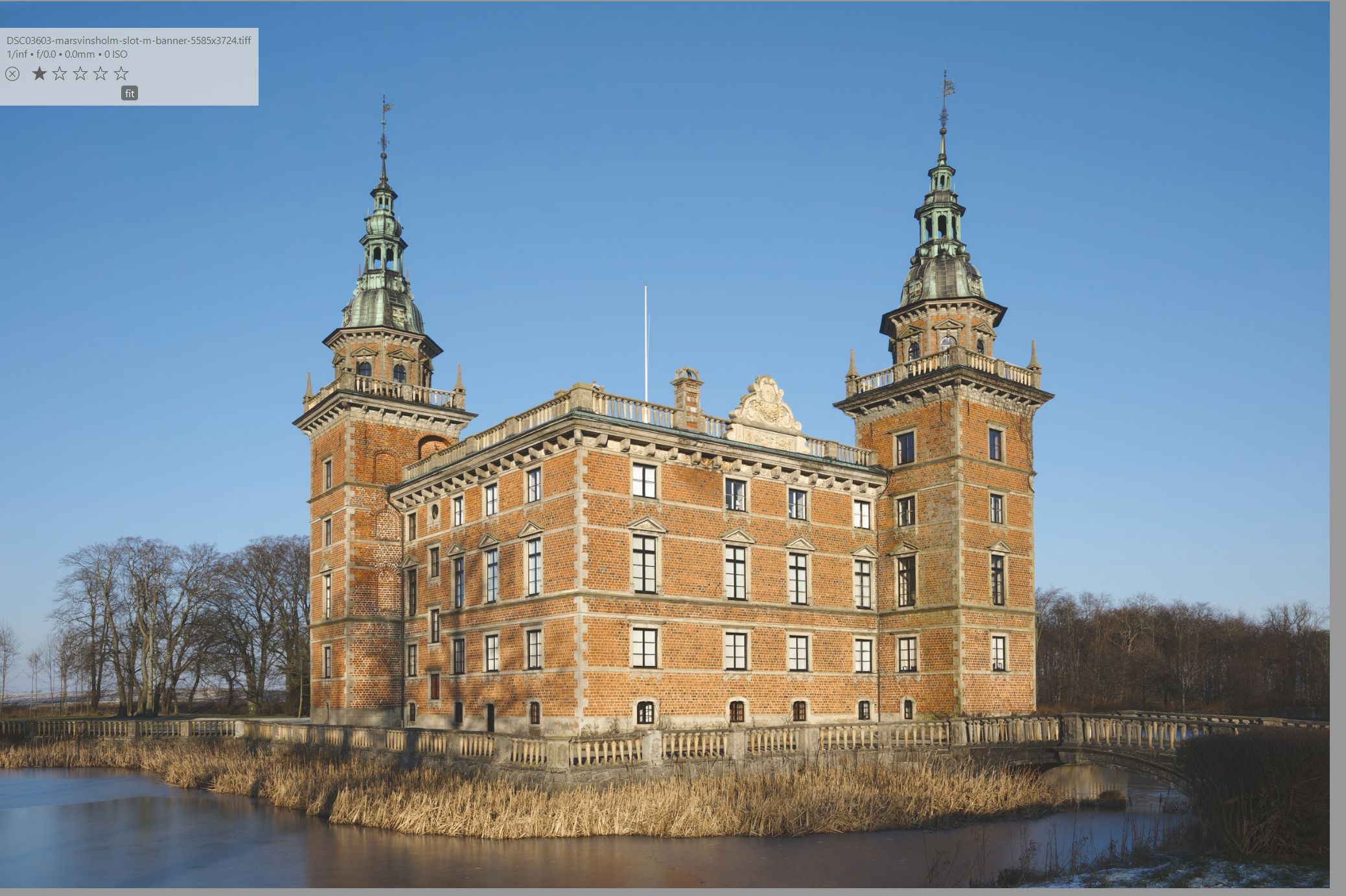1. The following image of a castle (with a pole with no flag) was developed from a raw file in Darktable, description and keywords were edited, and it was exported as a TIF.