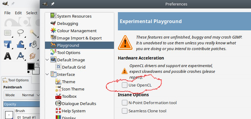 Gimp on Linux with OpenCL