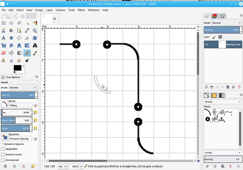 I'm wondering if GIMP can be used to design small electronics circuit boards quickly and easily. Many components pins are based on a 1/10 inch grid. By using the GIMP grid set to 0.1 and 'snap to grid' it looks like it might work well enough if I set a high-ish pixels/inch.