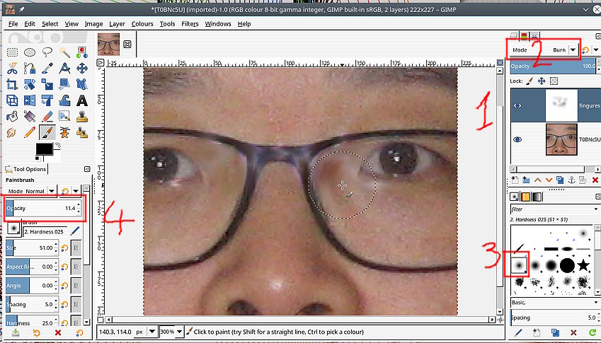 I am trying to correct a photo where there was too much bright white reflecting off spectacles.