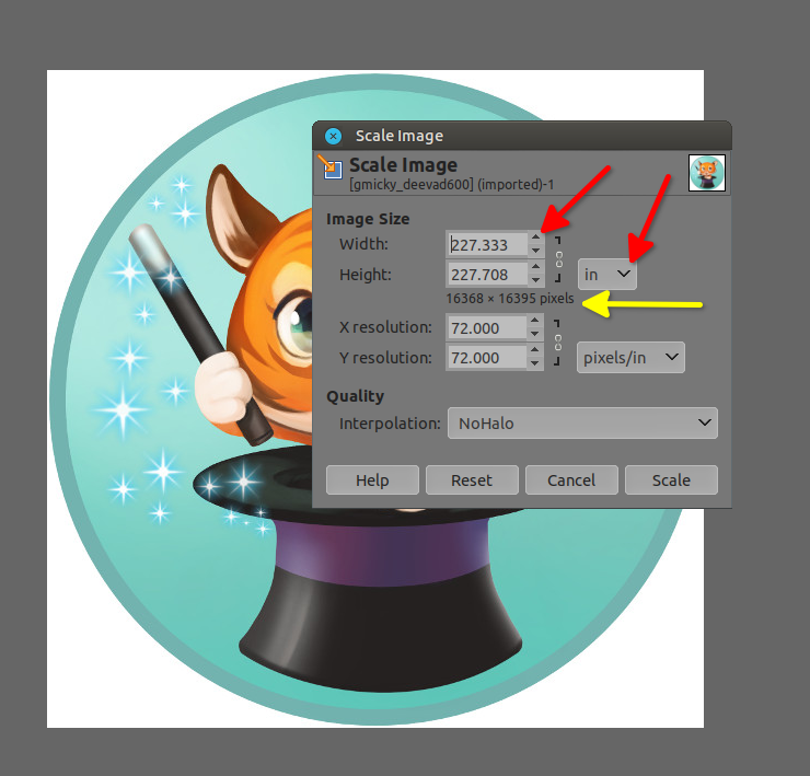 I did crop the truck image bumper to bumper and then used the 'scale image' tool to resize the truck to 227.7 inches. I then merged it onto a larger canvas. Now the truck measures 2.something inches again.