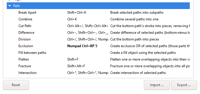 Would anyone know how to make these shortcuts work via keyboard? Possibly I'm missing something very simple (at least from the Inkscape developers' point of view).