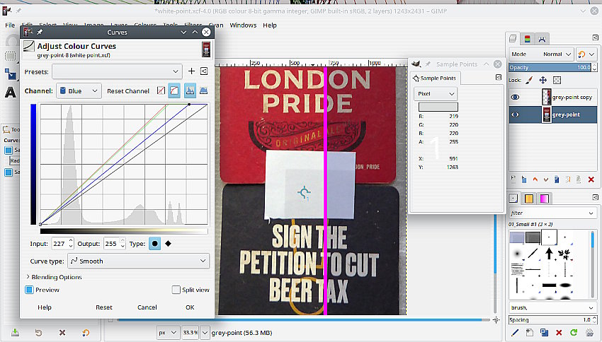 I have a white balance card that has specific RGB values, 219, 220, 220. I am trying to adjust my photo in gimp so that the area of the picture with that white balance card matches its actual numbers and thereby correcting all colors in the photo. I appreciate any help I can get on this! Thank you.