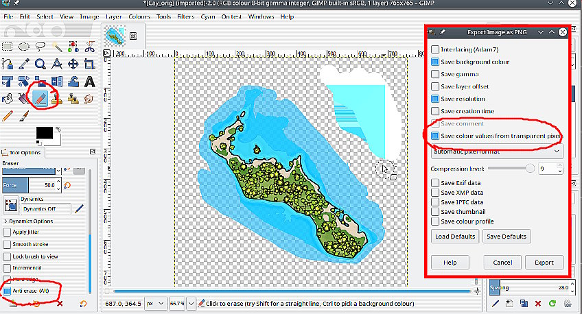Put the CLUT (made as previous video from your png + recoloured png) in C:\island which gave a gmic command
