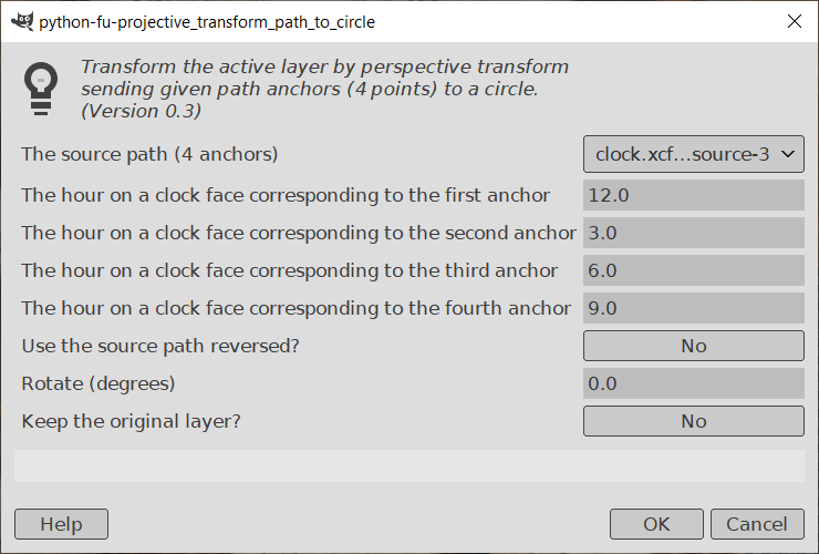 (11-11-2020, 06:16 AM)Ottia Tuota Wrote: I think you got it right. I guess you chose from the original distorted circle 4 points that should (after correction) be at points 12,3,6,9 on a clock face, and then you ran the plugin with the defaults (hours 12,3,6,9).