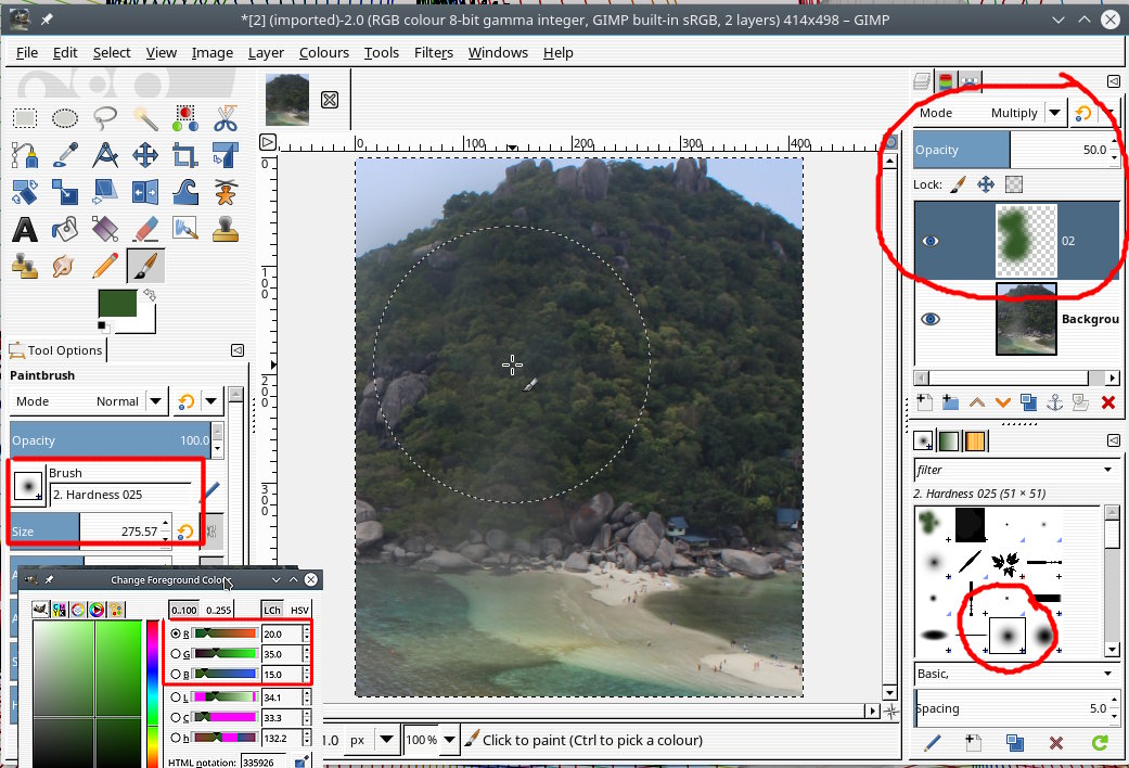 - You can also add a moderate amount of sharpening (Filters>Enhance>Sharpen)