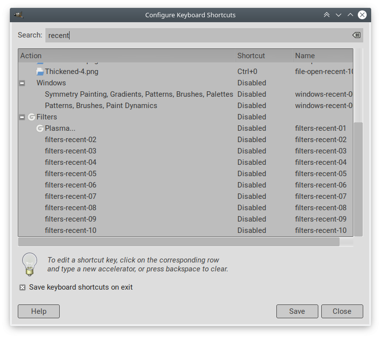 I found that in keyboard shortcuts, there is filters recent 01, 02...10.