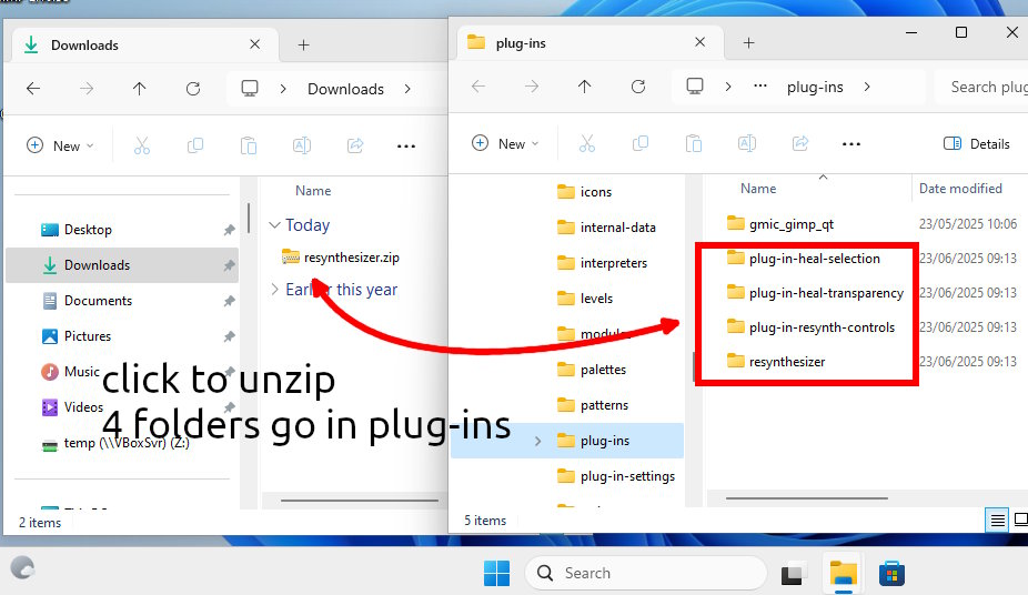 Hi Rich, I am trying your files. Thanks for making them. I put all of them, including the extras, in the plugins folder as per your screenshot. I am using Gimp 304 on Windows 11.