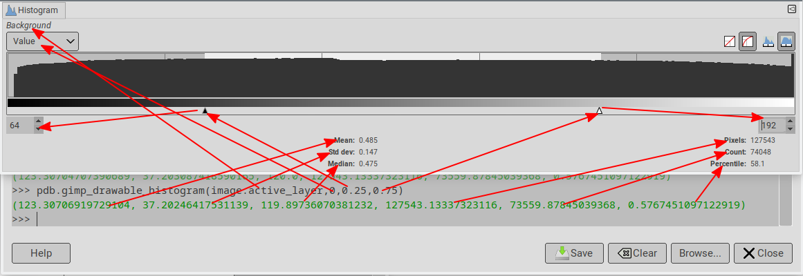 pdb.gimp_drawable_histogram(image.active_layer,0,0.,1.)[3]