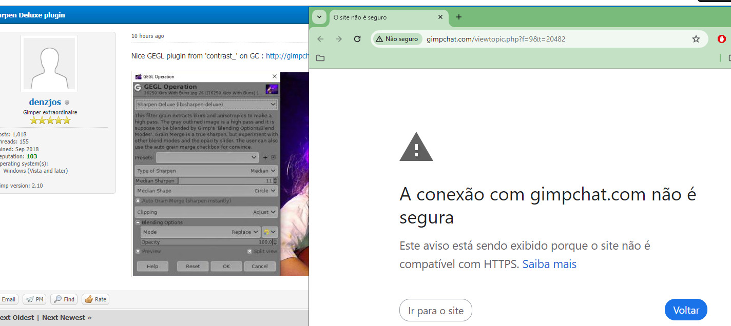 Samj Portable - Gimp 2.10.28 - Win-10 /64. (05-22-2024, 06:50 PM)Krikor Wrote:(05-22-2024, 08:26 AM)denzjos Wrote: Nice GEGL plugin from 'contrast_' on GC : http://gimpchat.com/viewtopic.php?f=9&t=20482 GC never had a SSL/TLS certificate (http without "s"), this does not mean that you cannot go, on the contrary, it's certainly an update of your browser lately that gives you this "alert" On the other hand GC could use Let's Encrypt like here, I mean seriously, to finally get a certificate and don't make its users managing with alerts from updated browsers ... I mean it's free with the Let's Encrypt basic plan it's even proposed by many hosts, and Let's Encrypt automatically update certificate every month or so without the owner of the website to care about it as it's all automated