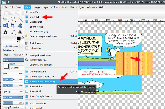 Hi there, I'm very new to GIMP so I'm not sure if it's some setting I need to change but why is 'Show Canvas Boundary' under the View menu greyed out? It's checked on and I can't uncheck to turn it off. Thanks for any help.
