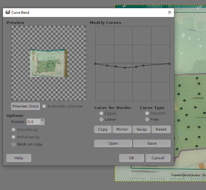 But that is interesting. It seems to call the Curve Bend plugin which is one of Gimp's standard plugins and an .exe file. So it could be thought as a different interface to the Curve Bend plugin. With the same idea one could write different interfaces to Curve Bend. That again seems to allow rotation so that bending could be done in different directions.