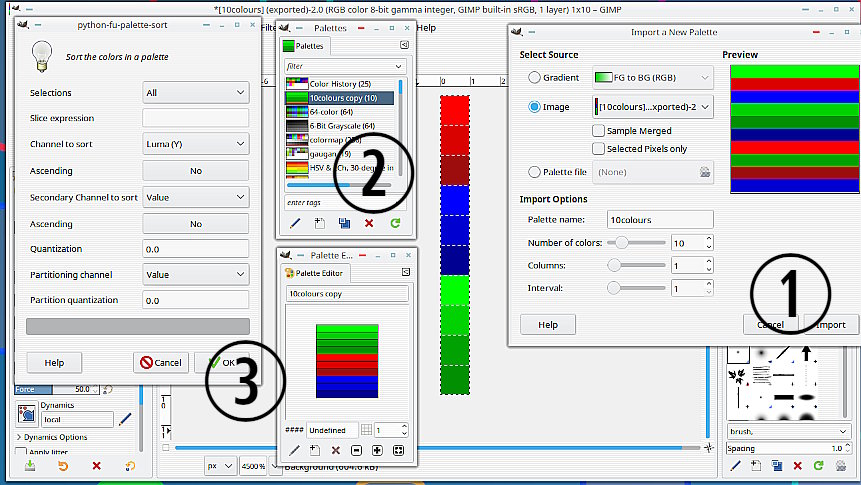 Quote:Are you able to export the Gimp Palette to Inkscape and sort it over there and then bring it back to Gimp?