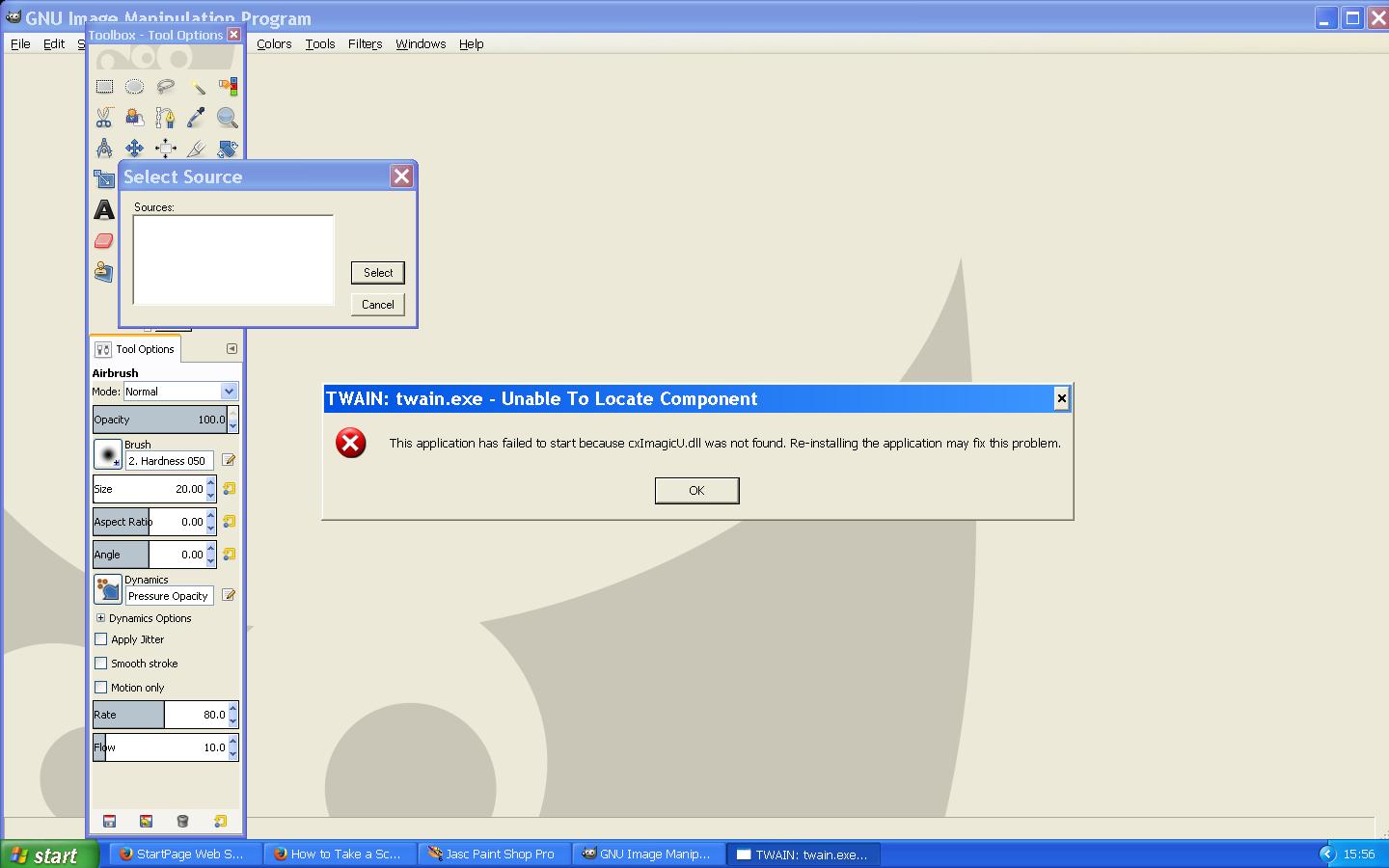 Hi, I've tried to open an image via TWAIN and received the following error message > Cx1magicU.dll not found. I'm fairly new to Gimp but everything else seems to be working fine. Does anyone know if this may be a problem with my installation or have I missed something in setting up TWAIN in Gimp? My TWAIN device works properly with my other imaging programs (Paintshop Pro and Photoshop, both old versions) so I don't think that can be an issue. Thanks, Dave H