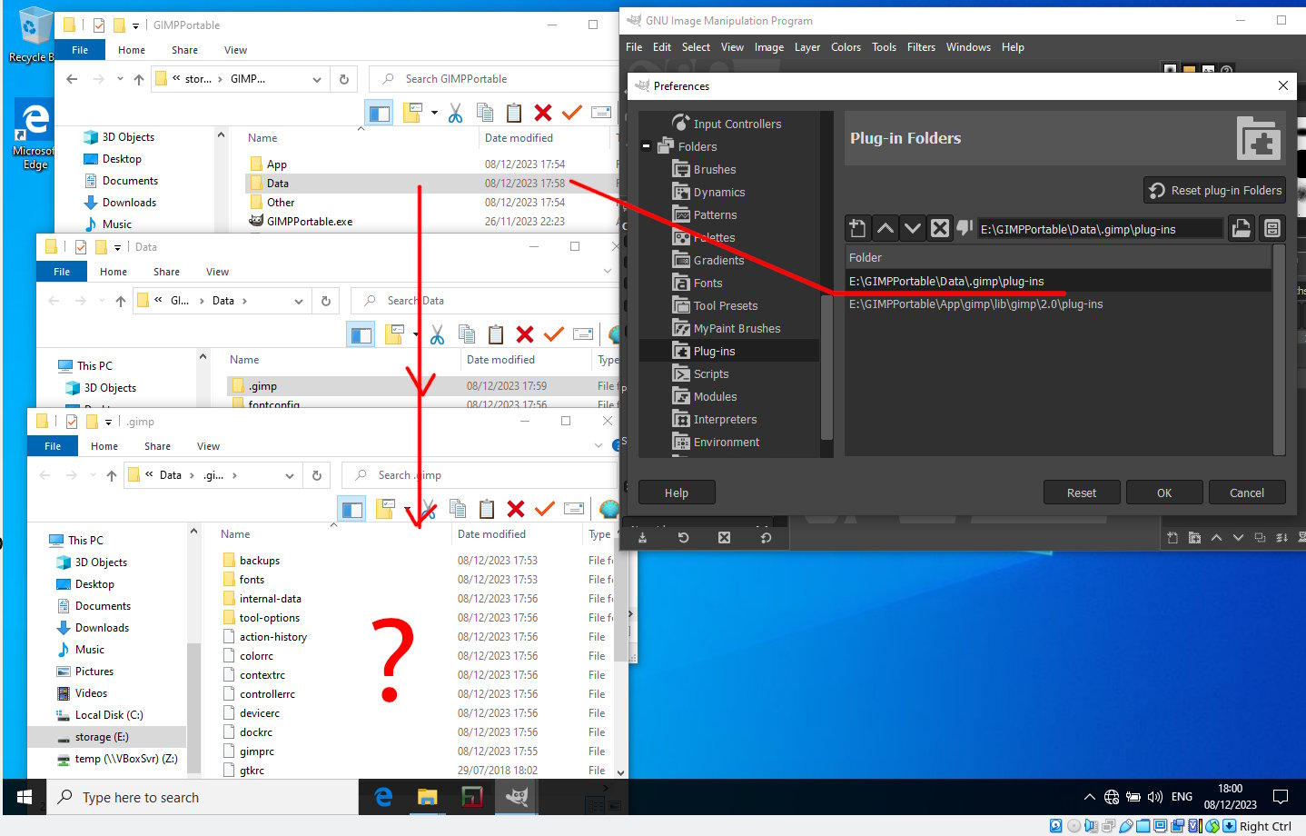 There are at least two Windows Gimp 2.10.36 portable versions. One from "samj" and another from portableapps.com Whichever one you use open Gimp and use Edit -> Preferences -> Folders (expand the list) and in plug-ins it shows the location of your Gimp User Profile path to the plug-ins folder.
