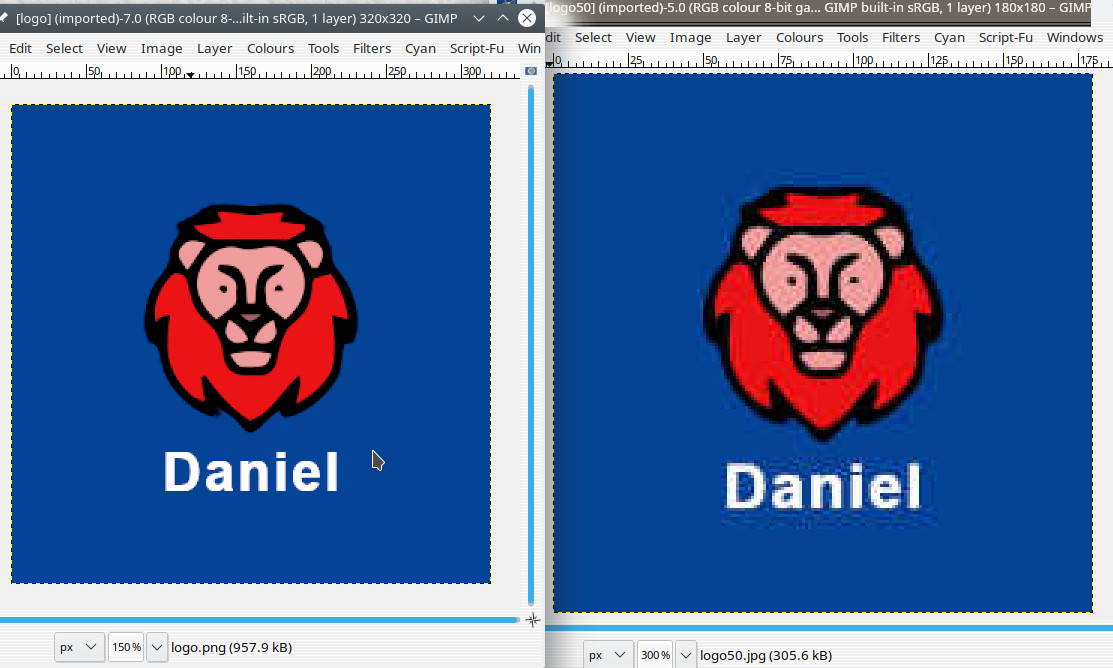 You can make an example yourself. Left side a png 320x320 that you might upload (in good faith) Right side scaled down to 180x180 and exported as a 50 quality jpeg.