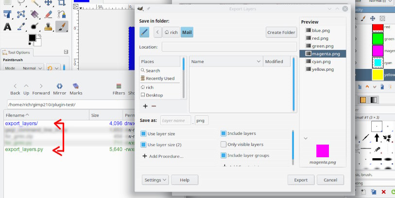 Added to the plugin folder and restarted GIMP. But ask instructed in ReadMe, there is no option under Files > Export as layers