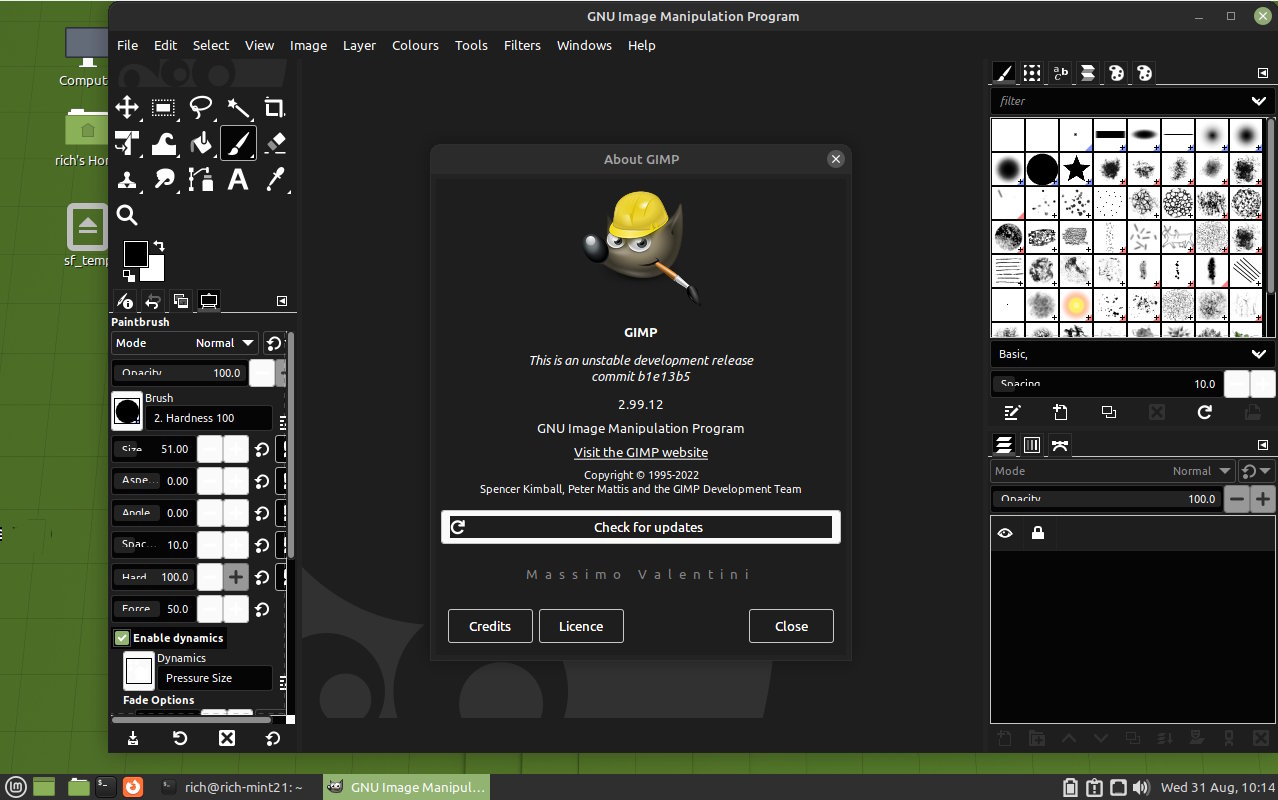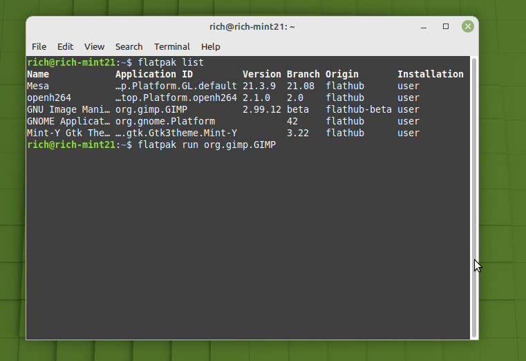 see: https://www.gimp.org/downloads/devel/ This using a Mint21 (equivalent to ubuntu22) Ubuntu is into snap packages, not sure if there is a Gimp 2.99.12 but for a flatpak Code: flatpak install --user https://flathub.org/beta-repo/appstream/org.gimp.GIMP.flatpakref...and follow the prompts Checking the installation and starting Gimp Must be the ugliest interface ever, I do not know what planet the developers are on.