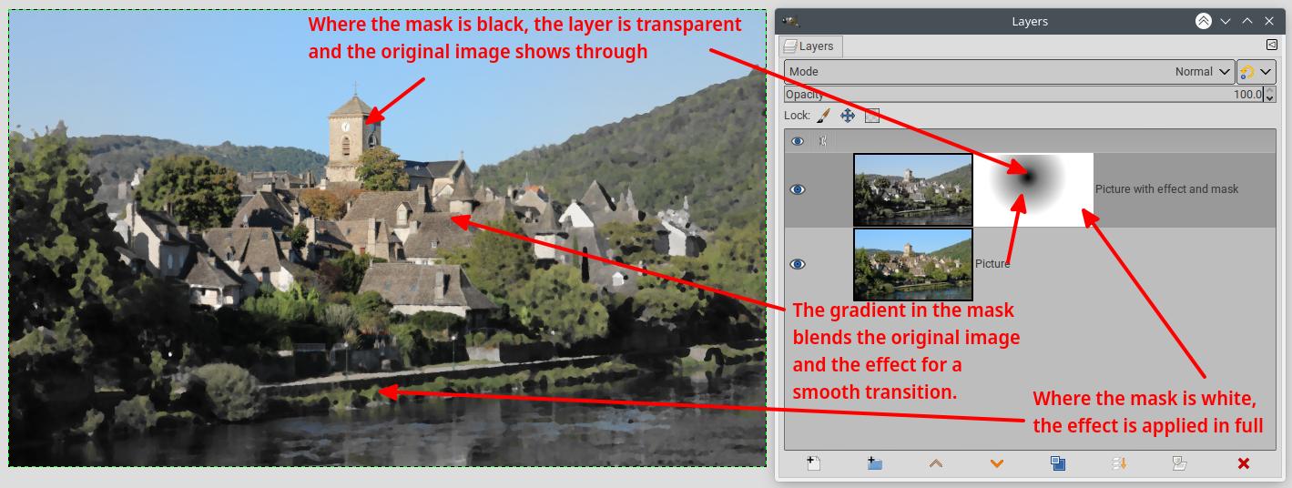 * You apply the effect on the whole image on the second layer (here a simple-minded Oilify