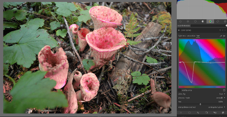 For example, the following attachments, showing the original image, then a hue vs saturation that changes the mushroom's saturation, then a hue vs hue that changes its color, and then a hue vs lightness that changes its lightness. (These are crude examples just to get the idea across.)