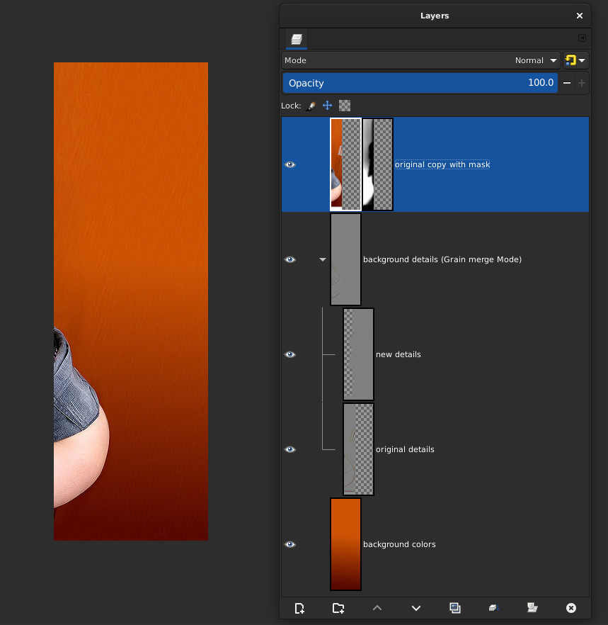 So far, I have copied pieces of that right border using a rectangular selection tool at a 400% zoom (with the grid spacing set to 1, this makes each pixel visible to the naked eye) and repeatedly pasted them to the right until I reach the right edge of the (expanded) image.
