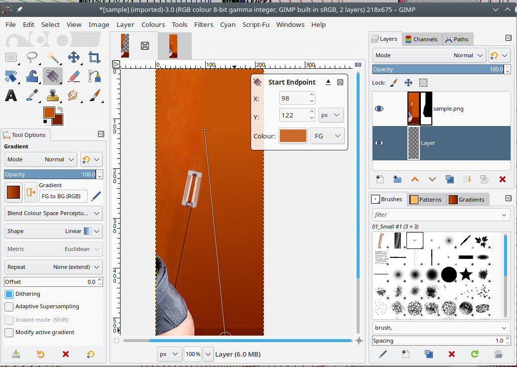 I have an image that I want to extend to the right. Most of the right border is a vaguely orange-red color, lighter near the top of the image, darker near the bottom.