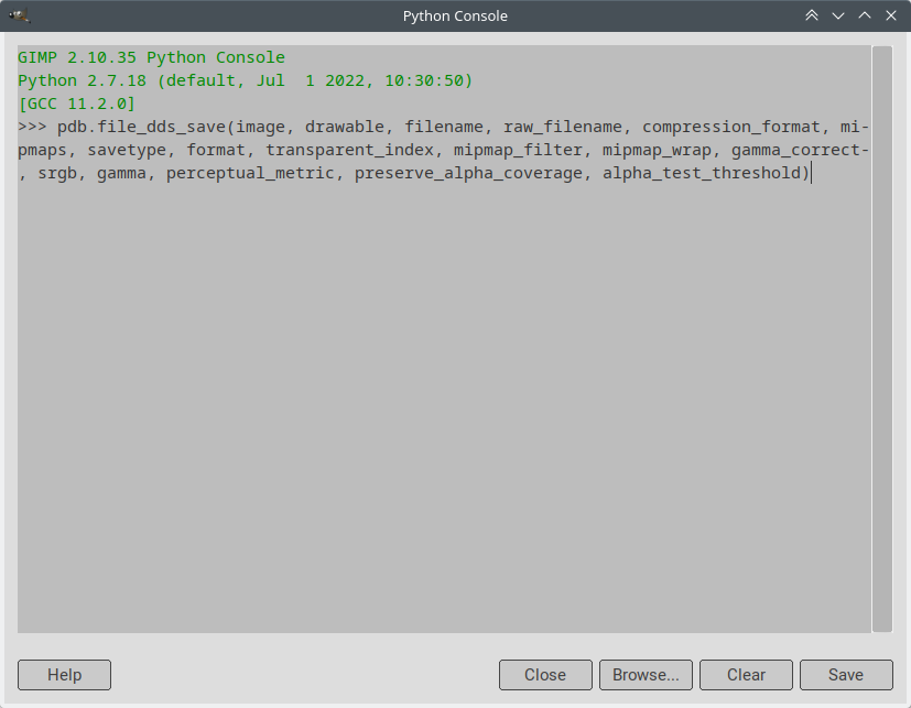 (file-dds-save RUN-NONINTERACTIVE image drawable filename filename 1 1 0 0 -1 0 0 )