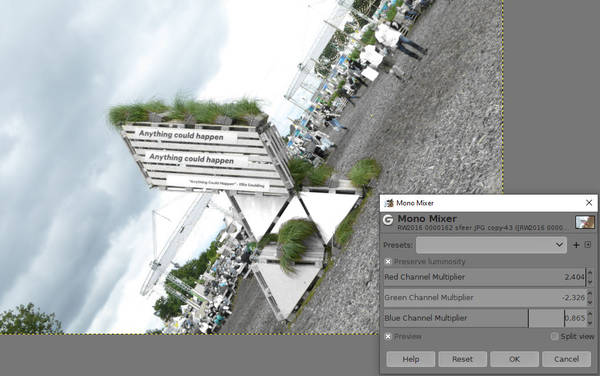 - on menu : Colours / Desaturate / Mono Mixer