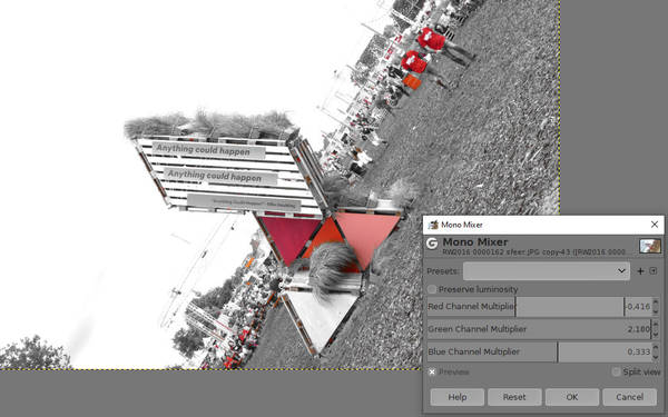 - on menu : Colours / Desaturate / Mono Mixer