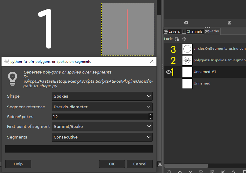How can I create a series of lines that radiate from the canvas center, and mark out equal segments of a circle? (I've put in place a horizontal and vertical guide, with the snap to guides turned on)
