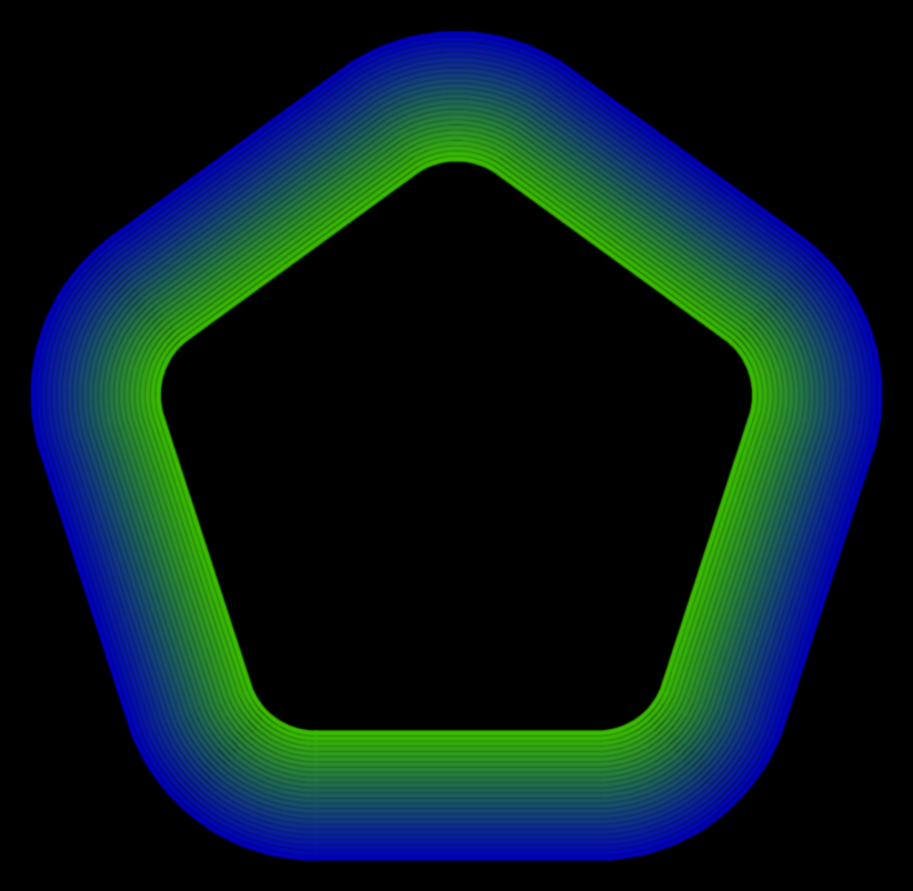 Not necessarily. Here, I made the two paths, an outer rounded pentagon, and the sharp pentagon whose summits are the centers of the circle arcs that round the outer pentagon, so the inside is a sharp pentagon. I could have just as well used an inner pentagon with still rounded angles: