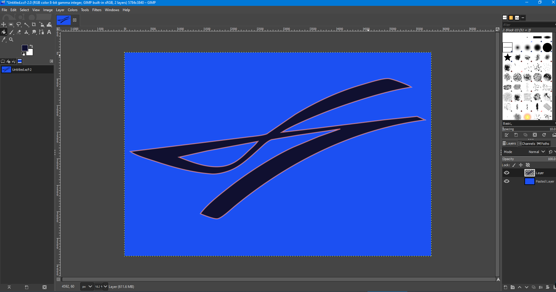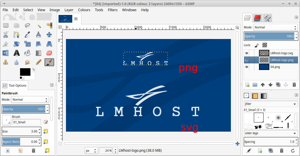 Then in Gimp File -> Open as Layers the svg file, set it to the size required then ok to add as a new layer.