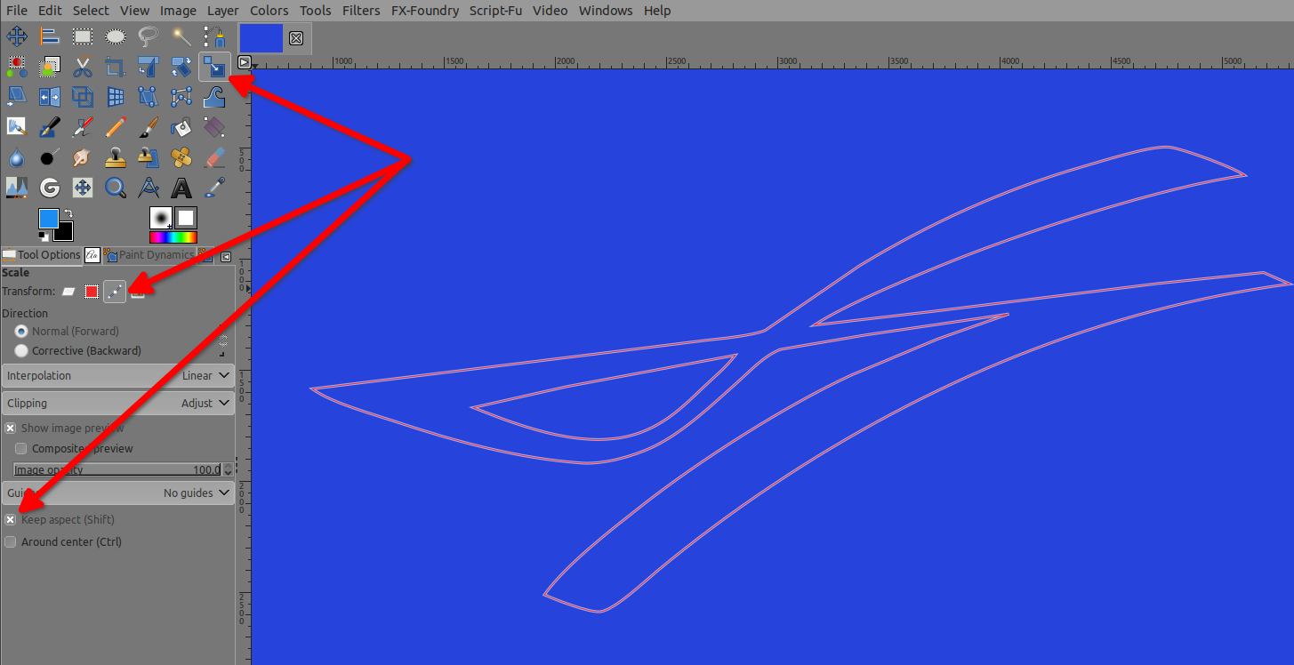 I am still not absolutely sure what you mean by stretch. In the video I match the size (with lots of the logo off the canvas) , or ....? These sort of logos are best made using a vector program such as Inkscape.
