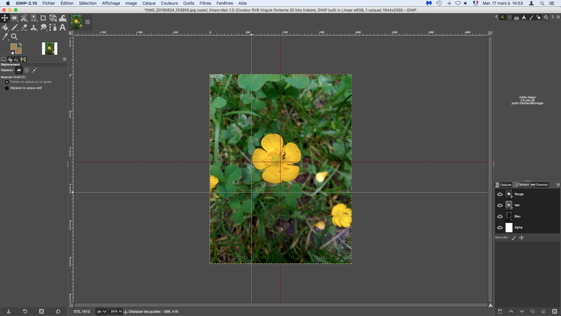 When a photo is imported, the Sample Points window is empty and a message reads (in french): This image has no sample point. However, I checked Display -> Show sampling points. In Picker mode, by installing the guides (vertical / horizontal) on the image, I have the Picker window (pixel / RGB) that opens. But nothing in the Sample Points window. How do I display these sample points? Does it depend on the type of photo (RGB or sRGB, etc.)? Thank you in advance for your advice.