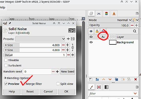 transparency layer -> Filters -> Render -> Noise -> Solid Noise.