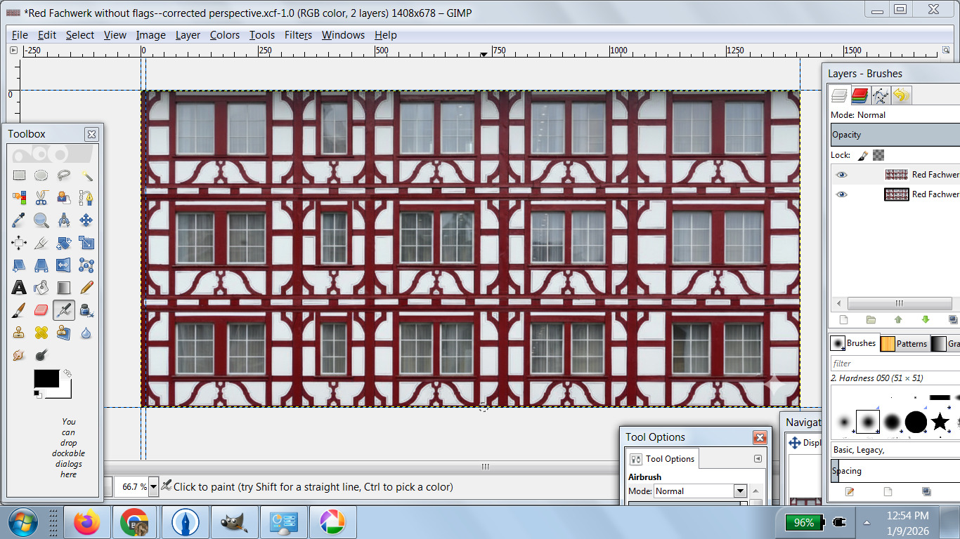 I prefer to work on my older ThinkPad touchscreen laptop where I run GIMP 2.8 on Windows 7. I also have a Windows 10 PC with GIMP 3.04. As another test, I used it to try Color Exchange on this Fachwerk photo. But again, when I click OK, I see no change. And again, the Edit menu tells me the exchange was made.