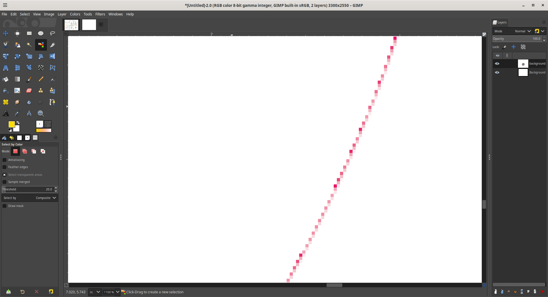 5. Using Select By Color, select the area made in step 3. (FWIW, I'm using Select By Composite with a threshold of 20.0)